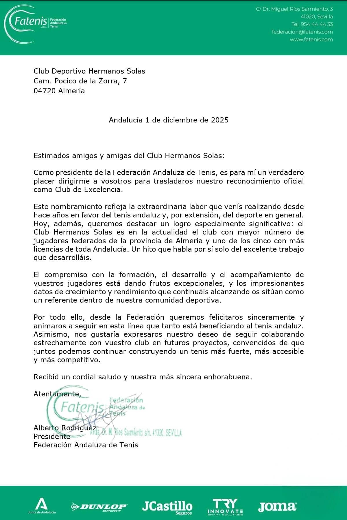 Ayer tuvimos el honor de recibir la visita del presidente de la Real Federación Española de Tenis. Para algunos podrá parecer solo una reunión institucional, pero para nosotros fue la confirmación de que el camino recorrido —con esfuerzo, sacrificio y corazón— está dando sus frutos.
